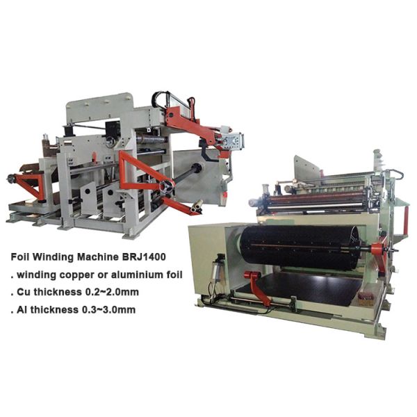 Single Layer Foil Coil Winding Machine For 2500KVA Capacity Dry Type Transformer BRJ1400 is mainly used to wind dry type transformer foil coil. This kind of foil winding machine can handle one layer of copper or aluminium foil and one or two layers of insulation material, such as insulation paper. The max width of the conductor foil is 1400mm. The welding unit is TIG, with winder and water cooler. The foil is cut by a rolling shear, and the foil alignment is adjusted by a photoelectric sensor. Moreover, this machine can be manufactured as requested. For example, the foil decoiler is for conductor foil with inner diameter 500mm, if the conductor foil with different inner diameter is used, the expanding range of the foil decoiler can be mended as per the inner diameter of the conductor foil. If the foil thickness is too large, such as 4.0mm, this need use bigger motor to drive. Therefore, just know your needs, the machine meeting your needs can be provided.